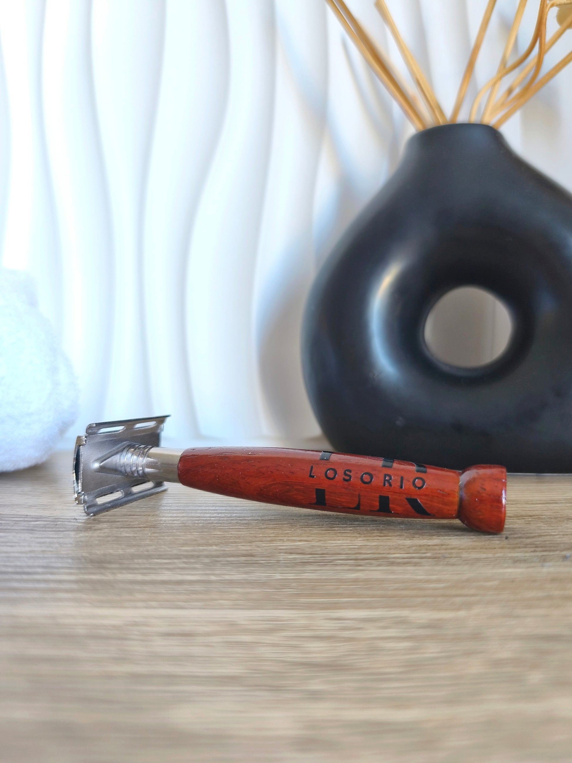 Offrez-vous un rasage authentique et durable avec un rasoir de sécurité doté dʼun manche en bois, lʼoutil idéal pour un soin précis, élégant et respectueux de lʼenvironnement.